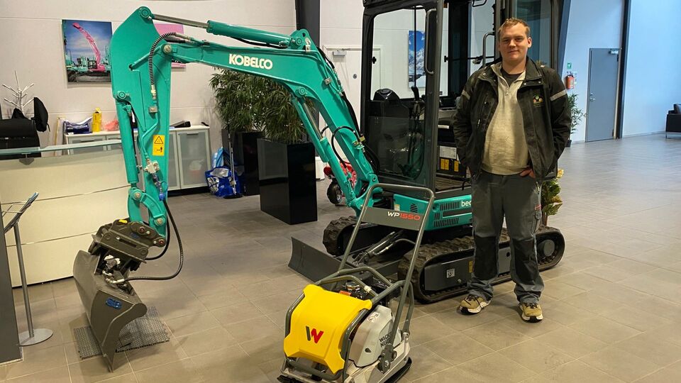 Vi gratulerer Marius Ekhaugen i Hagestell & Anlegg med to flotte tilskudd i maskinparken. Kobelco SK17 minigraver med skuffepakke og Wacker Neuson WP1550 vibroplate. Vi ønsker lykke til med prosjektene med to nye kvalitetsmaskiner i tiden fremover. Utstyret er solgt av Fabian Rosenberg // 40407176