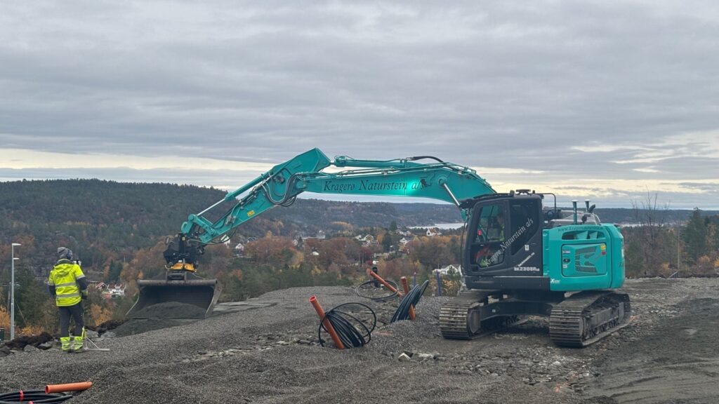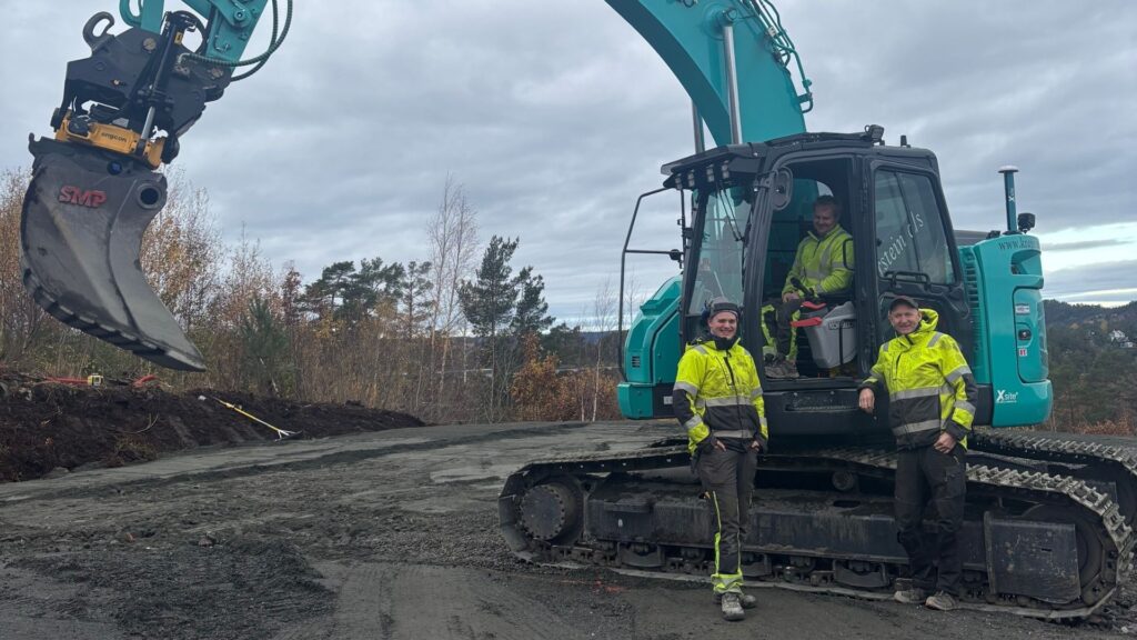 – Jeg har ikke et eneste prosjekt jeg angrer på. Og jeg er ekstra stolt av et felt vi har bygget. Det er et boligfelt, og det er et helt eget prosjekt. Det er med i programmet: Hjelp, vi bygger hus – med Trond Valle. Programmet kommer i hele ti episoder, og de flotte Kobelco maskinene er naturlig nok representert.