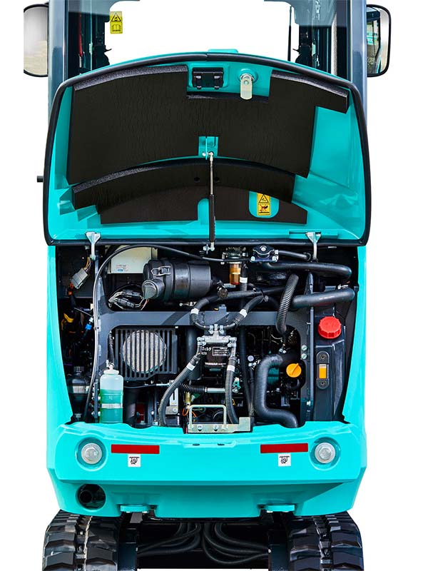 Med sin kompakte størrelse, gode stabilitet er minigraveren godt egnet til mange bruksområder. Ideell for arbeid i urbane områder og i landskapsarbeid . Den opplyste LCD-skjerme er standard, slik at maskinens data lett kan kontrolleres. Maskinen har også breddbart understell som kan utvides fra 98-132 cm.