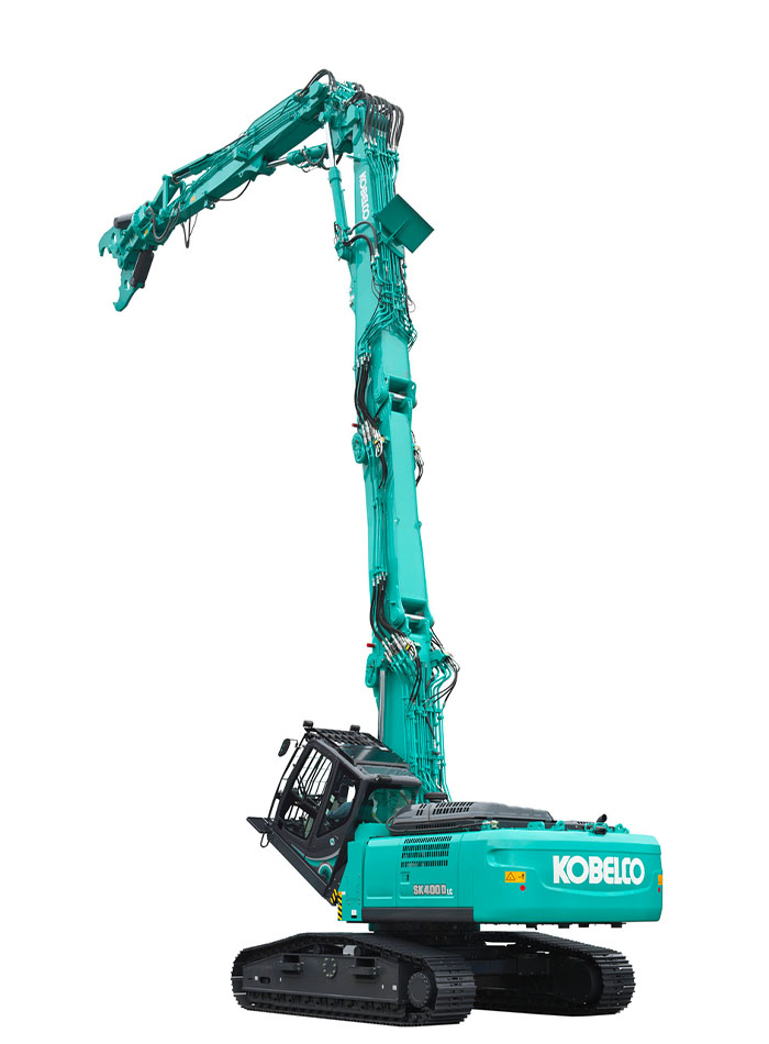 Kobelco SK400D er spesielt utviklet for å sikkert og nøye kunne skille et bilchassis i håndterbare deler før skroting, dvs. gjenvinninng av metall og resirkulerbare produkter.